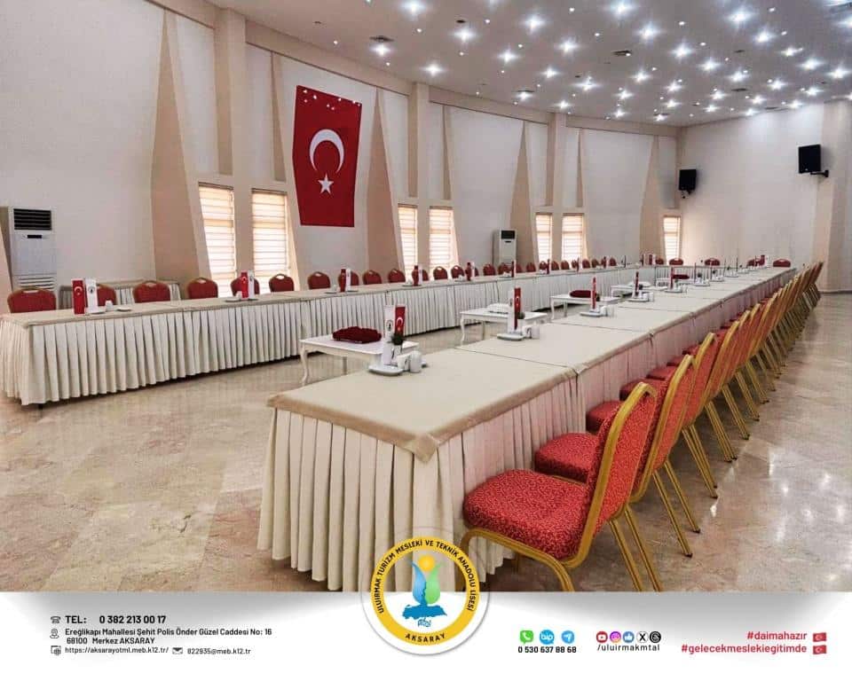 Aksaray'ın merkezinde yer alan modern ve tam donanımlı konferans salonumuz, tüm beklentilerinizi karşılamak üzere tasarlandı. Geniş ve konforlu alanı ile katılımcıların rahatlığını ön planda tutuyor, sizlere rahat bir ortam sağlıyoruz. Son teknoloji ekipmanları ile sunumlarınızı ve etkinliklerinizi sorunsuz bir şekilde gerçekleştirebilirsiniz. Salonumuzda esnek düzenleme seçenekleri ile ister tiyatro düzeni, ister sınıf düzeni, ister yuvarlak masa düzeni, isterseniz u masa düzeni şeklinde katılımcıların sayısı ve toplantının niteliiğine göre esnek şekilde düzenleme yapabilirsiniz.