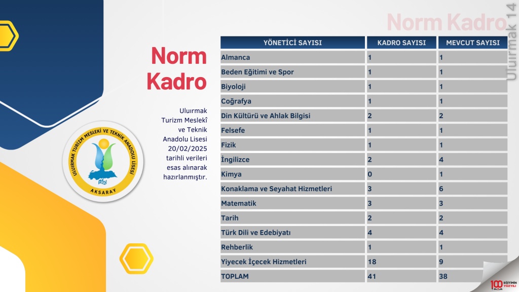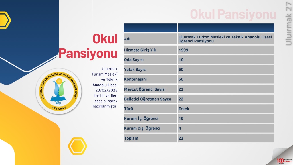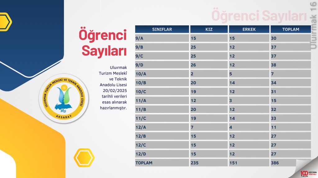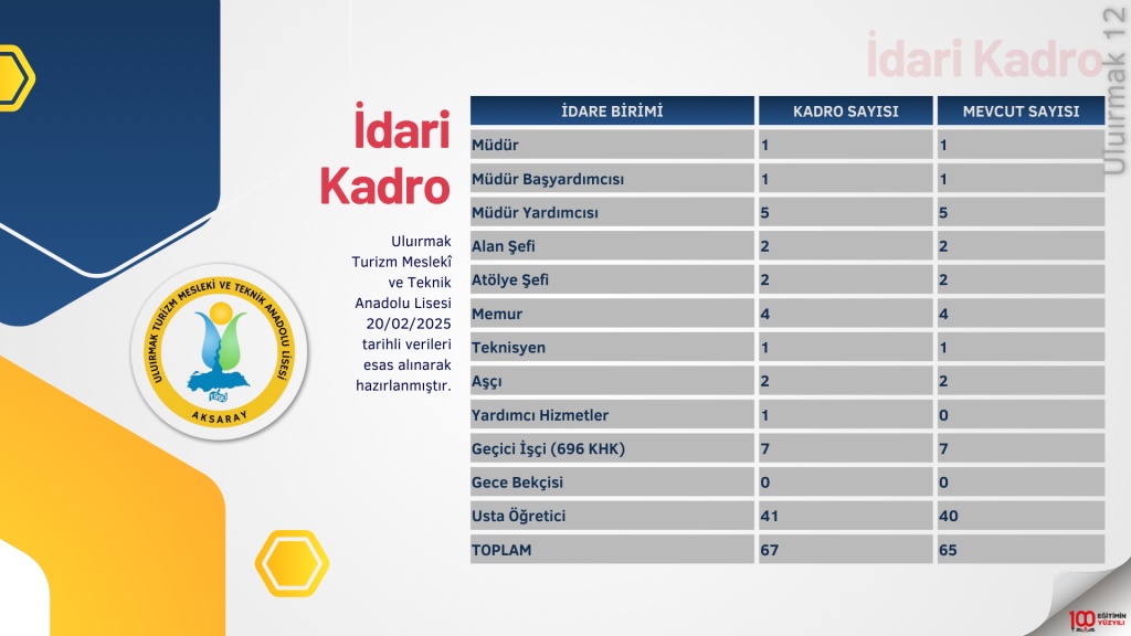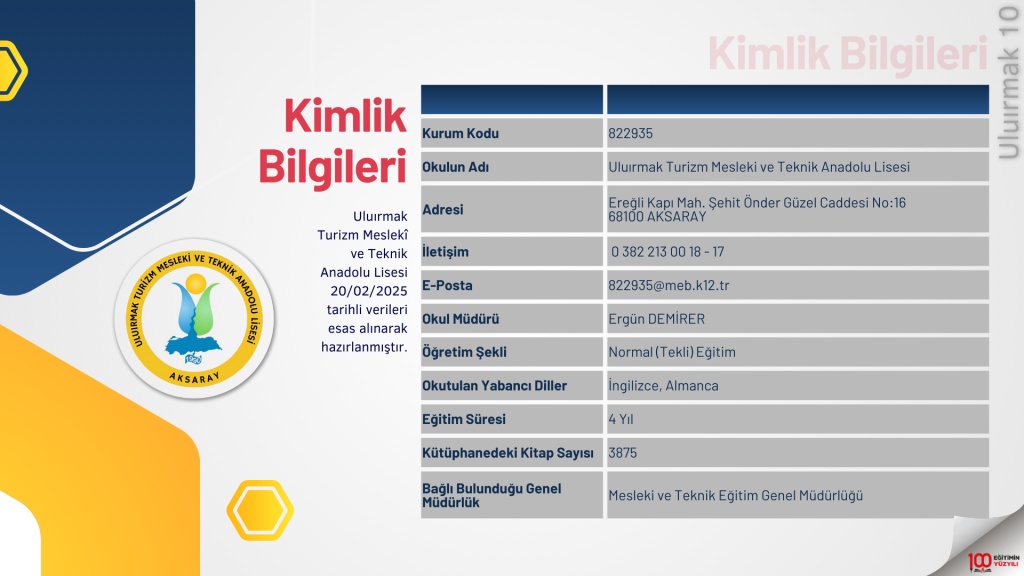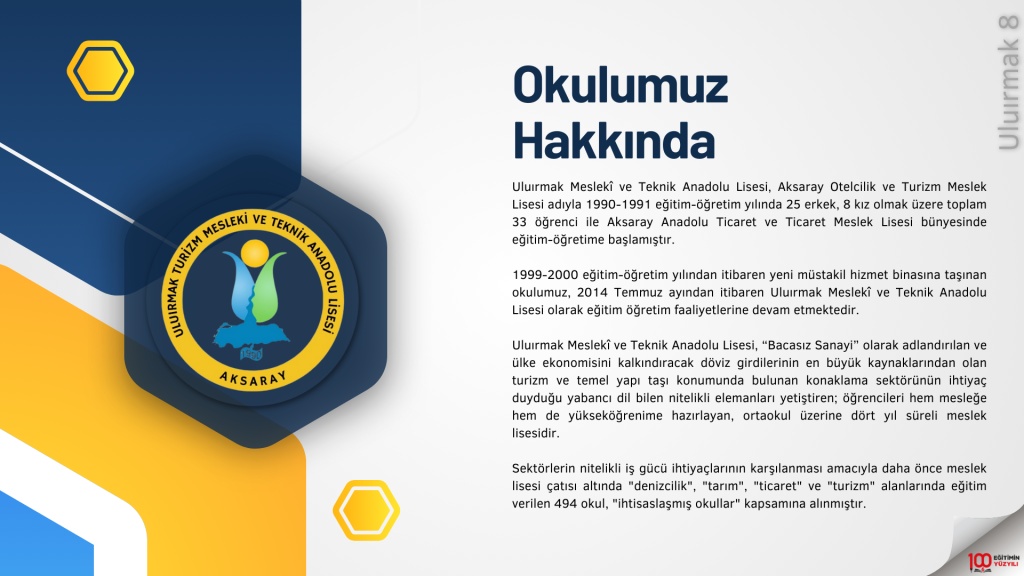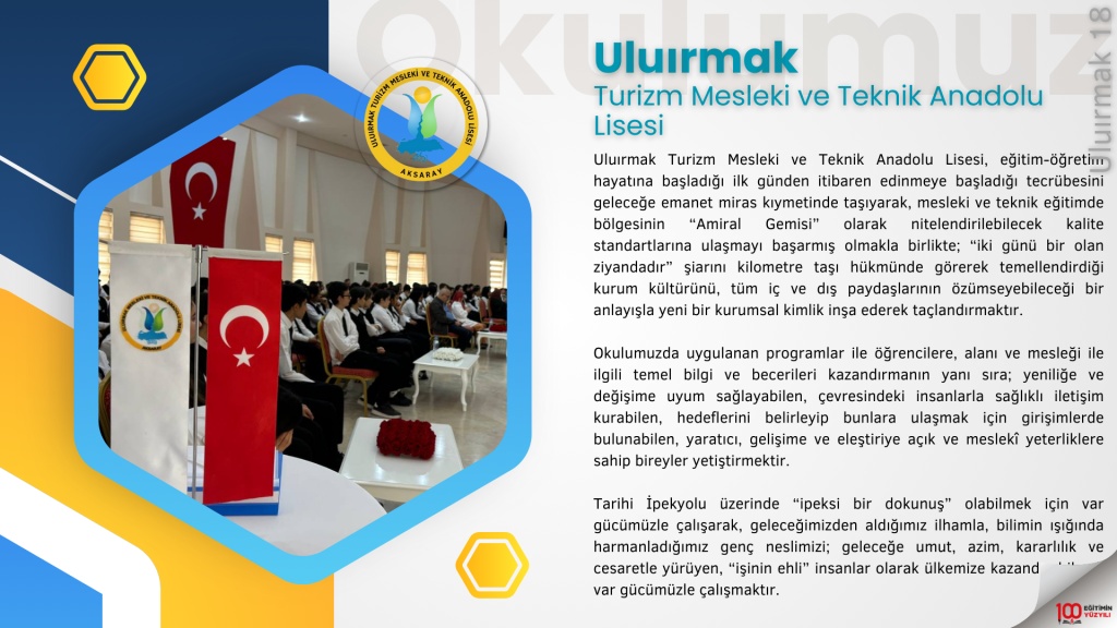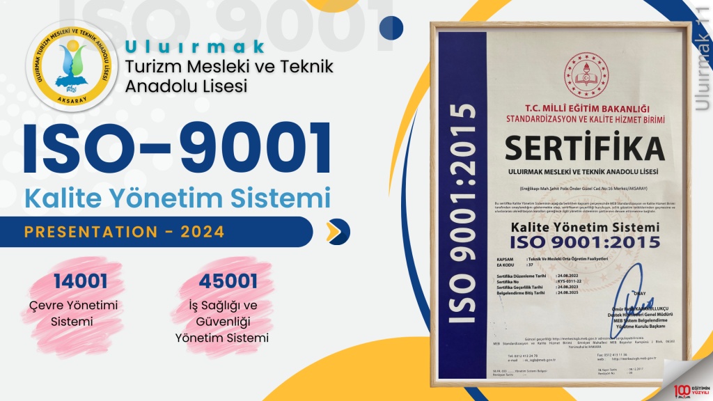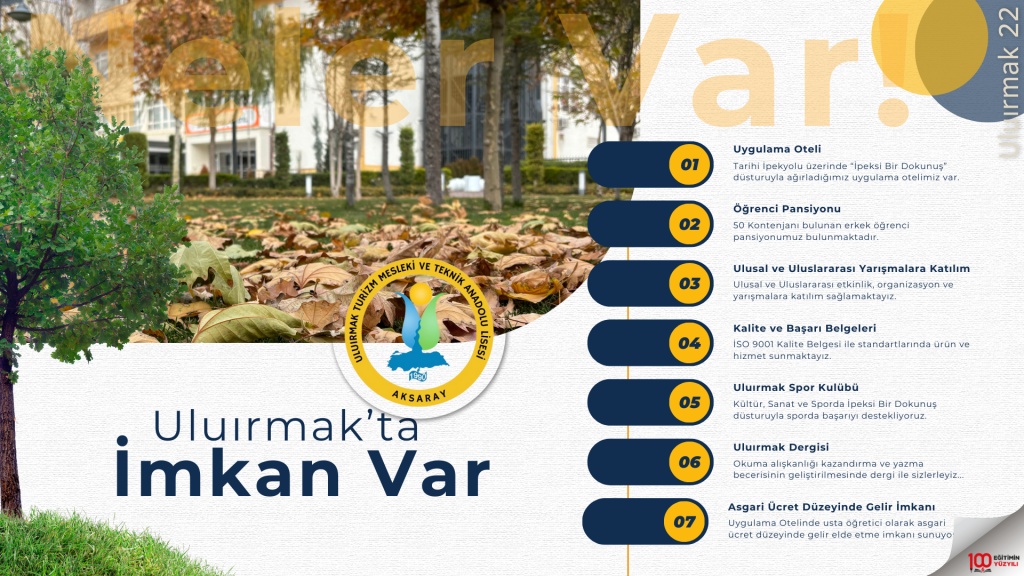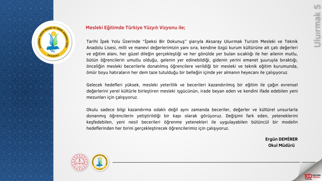 Aksaray Uluırmak Turizm Mesleki ve Teknik Anadolu Lisesi olarak;