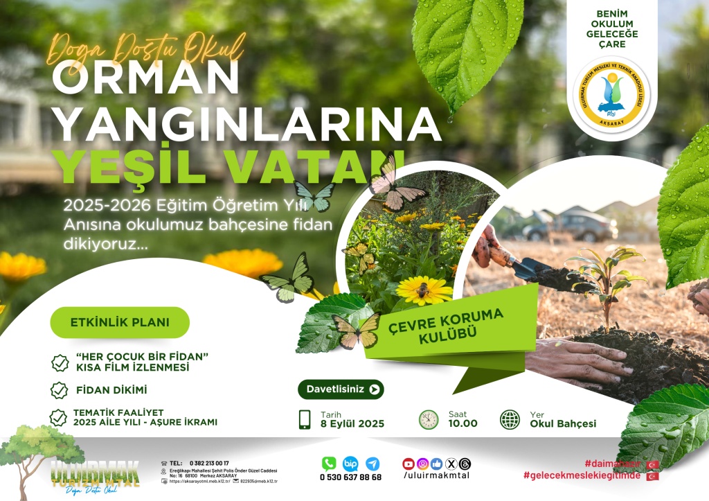 2025-2026 eğitim-öğretim yılı, Millî Eğitim Bakanlığı'nın "Yeşil Vatan- Benim Okulum Geleceğe Çare" projesi kapsamında okulumuzda da çevre bilinci ve sürdürülebilirlik etkinlikleriyle başladı. Bu tematik çalışma, Türkiye Yüzyılı Maarif Modeli'nin "köklerden geleceğe" vizyonuyla, öğrencilerimizin sadece ders öğrenmekle kalmayıp, aynı zamanda vatanın yeşilini koruma sorumluluğunu da üstlenmesini amaçlıyor.
