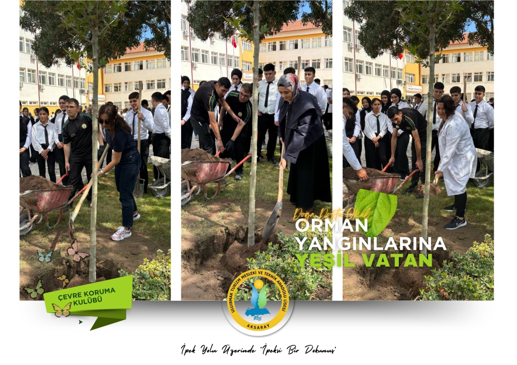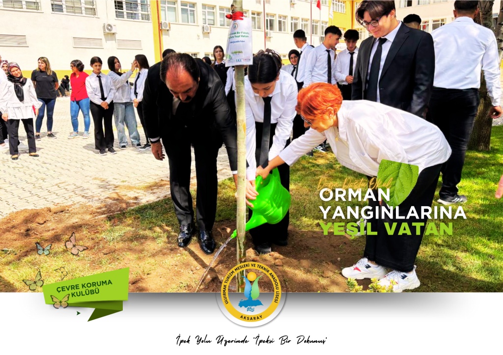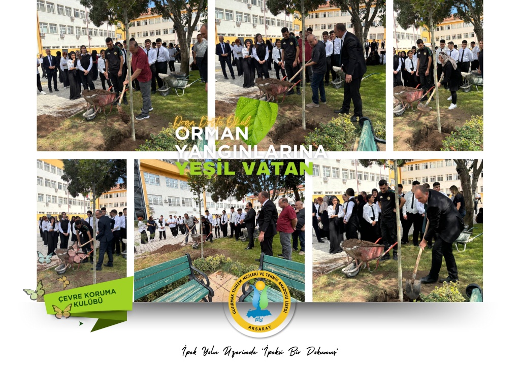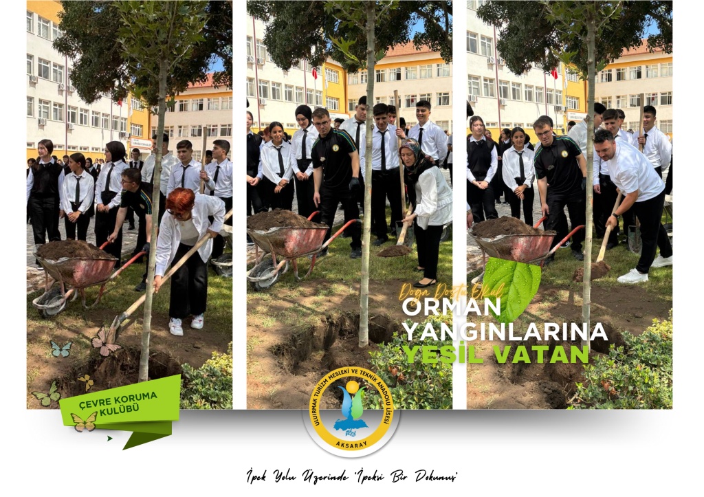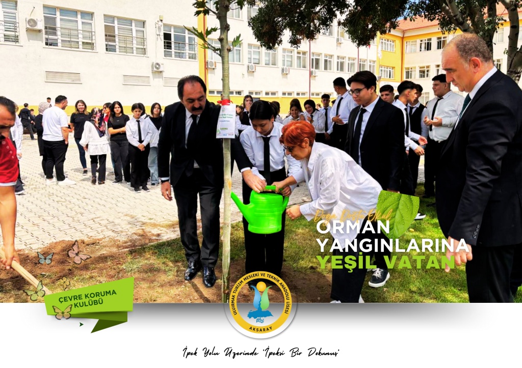 Okulumuz Çevre Koruma Kulübü, bu vizyon doğrultusunda okul bahçesinde bir fidan dikim etkinliği gerçekleştirdi. Etkinlikte konuşan Okul Müdürü Ergün DEMİRER, gelecekte bizi bekleyen kuraklık, aşırı hava olayları ve orman yangınları gibi çevresel sorunlara karşı bugünden adımlar atılması gerektiğini vurguladı. DEMİRER, "Bu büyük sorumluluğu başarıyla yerine getirebilmek için her birimizin el birliğiyle eğitim kurumlarımızda çevreye duyarlı etkinlikleri hem teorikte hem de pratikte hayata geçirmesi gerekir," dedi. Bu farkındalık çalışması için Okul Çevre Koruma Kulübü öğrencilerine ve Kulüp Danışman Öğretmeni Derya ALTINKAYA'ya teşekkür ederek, eğitim-öğretim yılının ilk dersinin "Orman Yangınlarına Karşı Yeşil Vatanı Korumak" gibi anlamlı bir konuyla başladığını belirtti. Bu dersin, öğrencilere orman yangınlarının nedenlerini, sonuçlarını ve yangınları önlemek için neler yapabileceğimizi öğreteceğini söyledi.