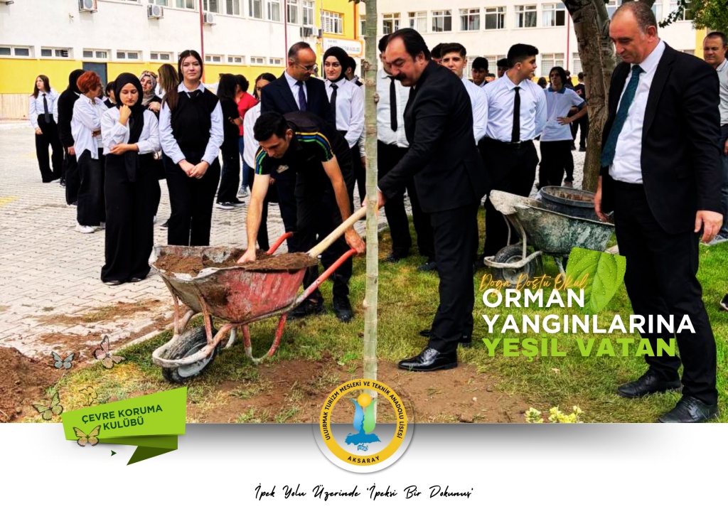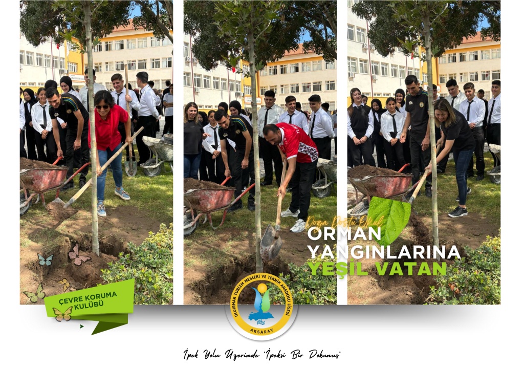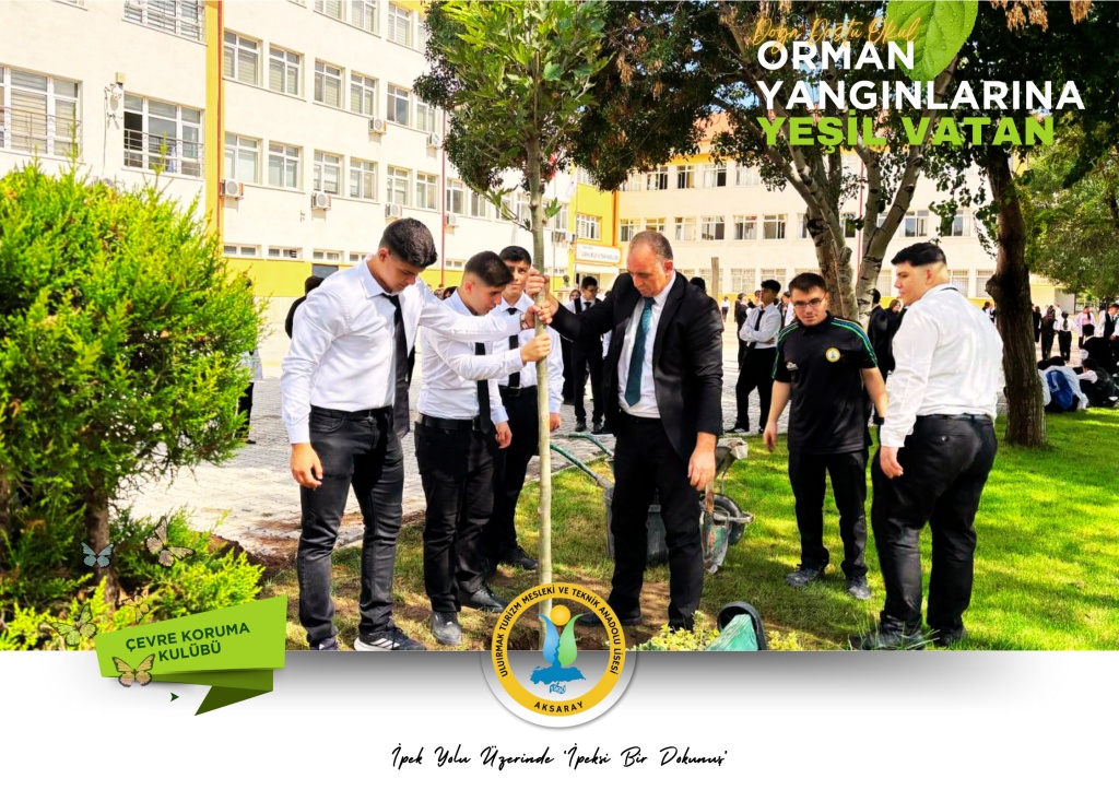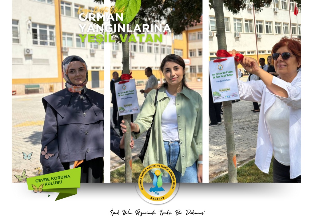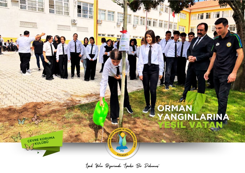 Okulumuz Çevre Koruma Kulübü, bu vizyon doğrultusunda okul bahçesinde bir fidan dikim etkinliği gerçekleştirdi. Etkinlikte konuşan Okul Müdürü Ergün DEMİRER, gelecekte bizi bekleyen kuraklık, aşırı hava olayları ve orman yangınları gibi çevresel sorunlara karşı bugünden adımlar atılması gerektiğini vurguladı. DEMİRER, "Bu büyük sorumluluğu başarıyla yerine getirebilmek için her birimizin el birliğiyle eğitim kurumlarımızda çevreye duyarlı etkinlikleri hem teorikte hem de pratikte hayata geçirmesi gerekir," dedi. Bu farkındalık çalışması için Okul Çevre Koruma Kulübü öğrencilerine ve Kulüp Danışman Öğretmeni Derya ALTINKAYA'ya teşekkür ederek, eğitim-öğretim yılının ilk dersinin "Orman Yangınlarına Karşı Yeşil Vatanı Korumak" gibi anlamlı bir konuyla başladığını belirtti. Bu dersin, öğrencilere orman yangınlarının nedenlerini, sonuçlarını ve yangınları önlemek için neler yapabileceğimizi öğreteceğini söyledi.