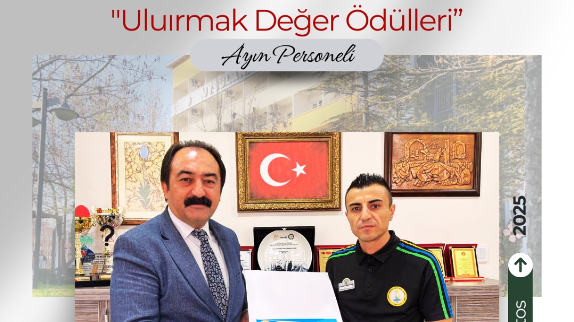 Okulumuzun çalışma prensipleri doğrultusunda, "Uluırmak Değer Ödülleri" kapsamında yürütmekte olduğunuz görevinizde göstermiş olduğunuz özverili, gayretli ve örnek çalışmalarınızdan dolayı “Uluırmak Değer Ödülü” almaya layık görüldünüz. Tebrik eder, başarılı çalışmalarınızın devamını dilerim.