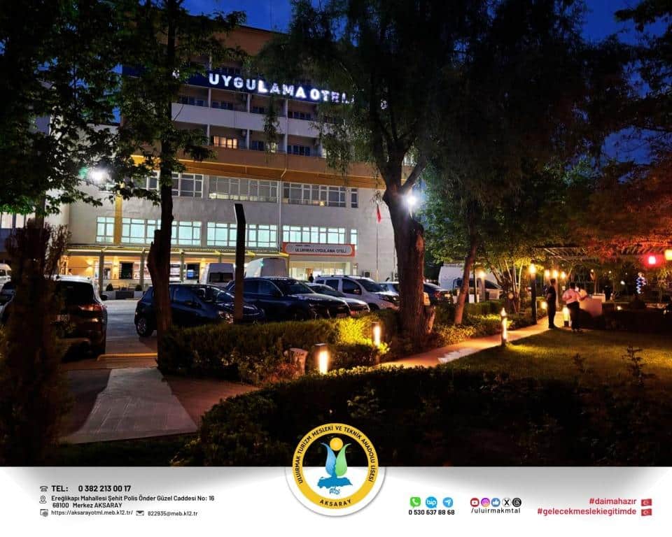 - Eğitim ve Gelişim: Uluırmak Uygulama Oteli, mesleki eğitim alan öğrencilerin pratik becerilerini geliştirmelerine olanak tanır. Bu kapsamda 200'ü aşkın ürün çeşitliliği ile hizmet vermekteyiz. Misafirler, geleceğin turizm profesyonellerinin özenli ve hevesli hizmet anlayışıyla karşılaşır. Bu durum, hem öğrencilerin gelişimine katkıda bulunur hem de misafirlere daha kişisel bir deneyim sunar.