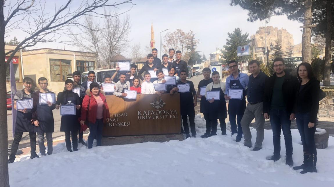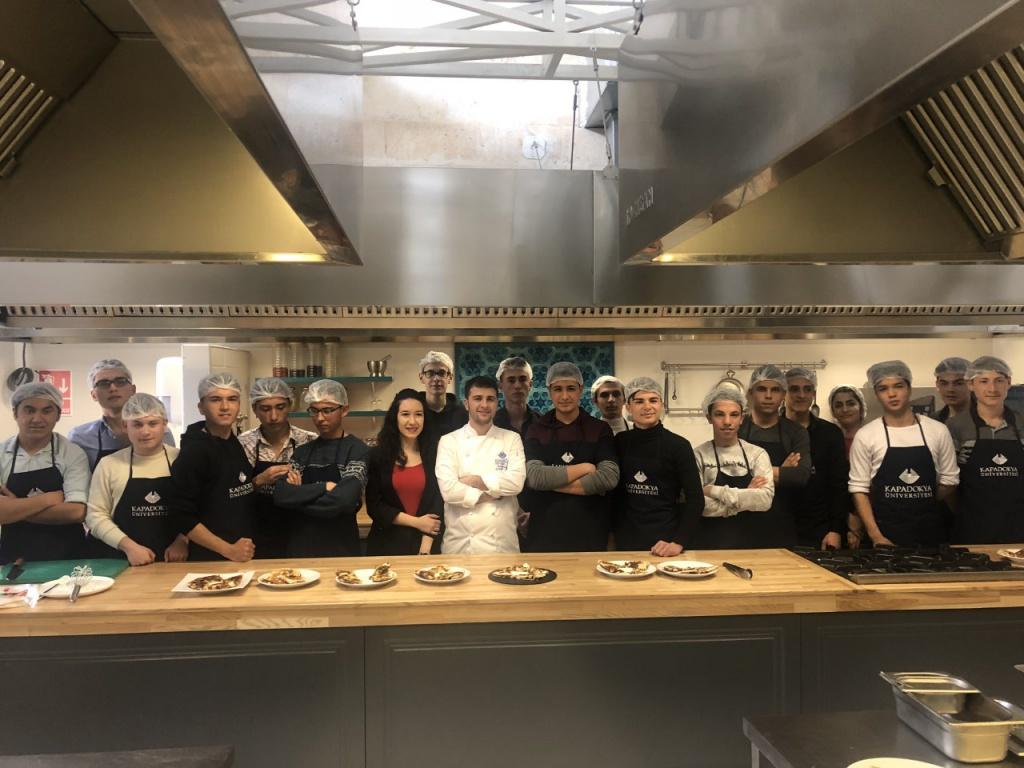 12/B Mutfak dalı sınıfı öğrencilerimizle Nevşehir Kapadokya Üniversitesi ziyaret edilerek, ''gastronomi eğitimi'' almışlardır. Tecrübe,deneyim ve görüşlerini öğrencilerimizle paylaşan değerli eğitimcilere katkılarından dolayı teşekkür ediyoruz.